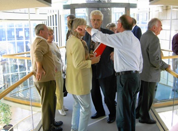 Der Besucherdienst des Landtages empfing die Besuchergruppe in der Lobby des Gebäudes. Nach einem Frühstück folgte zunächst ein kurzweiliger Vortrag über die sechzigjährige Geschichte des Landtages und eine Einführung in die parlamentarische Arbeit. Vielleicht mit Rücksicht auf die Besuchergruppe fand diese Einführung durch einen Kölner und nicht durch einen Düsseldorfer statt. Den Abschluss des Programms im Landtag bildete ein Aufenthalt auf dem Besucherbalkon des Plenarsaales, in dem gerade die öffentliche Anhörung der Enquete-Kommission zum Thema "Öl- und Gasreserven" stattfand.