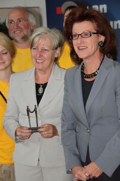 Regierungspräsidentin Gisela Walsken mit Frau Lenkeit (DKSB) und den Preisträgern der Kinder- und Jugendinitiative Merzbach (gelbe T-Shirts), Wally Feiden, Wolfgang Henseler und Ulrich GalinskyZum vierten Mal wurde am 13.Mai 2011 der Ehrenamtspreis der SPD Rhein-Sieg verliehen. In diesem Jahr sollte das ehrenamtliche Engagement im Bereich der Betreuung von Kindern und Jugendlichen gewürdigt werden.